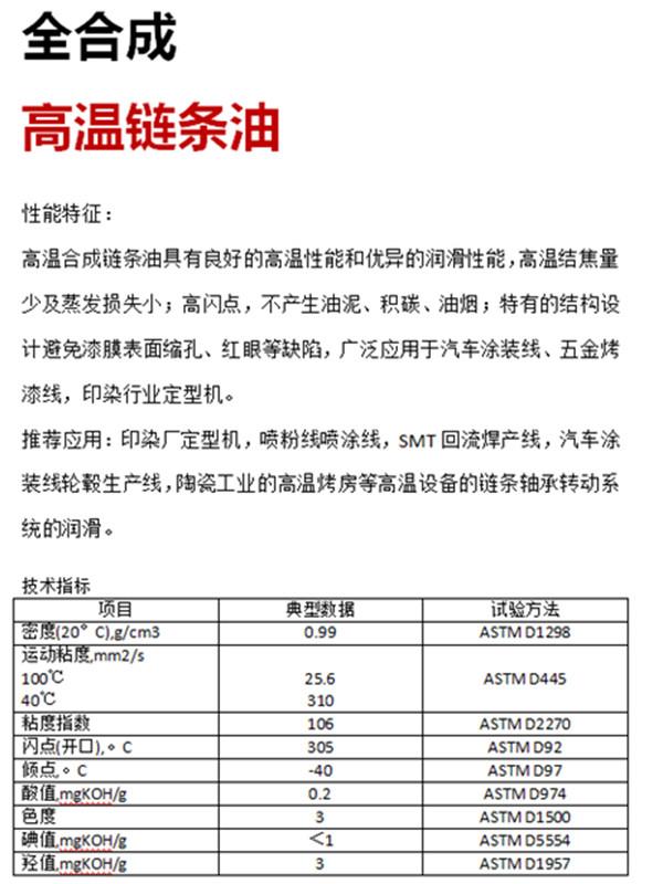 廈門威馬工貿(mào)有限公司位于美麗的花園城市-廈門市同安區(qū),公司專營合成高溫油脂系列產(chǎn)品。產(chǎn)品分為:高溫鏈條油、高溫潤滑脂、高低溫潤滑脂等系列油品。廣泛應(yīng)用于:定型機(jī)、噴涂/噴粉、巖棉等高溫潤滑設(shè)備,本品無煙,無殘?jiān)?,屬于全合成高溫油系列,可寄樣試用,長期服務(wù)全國客戶。